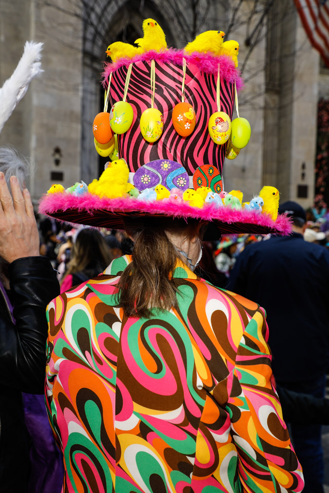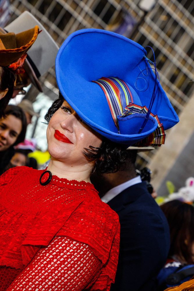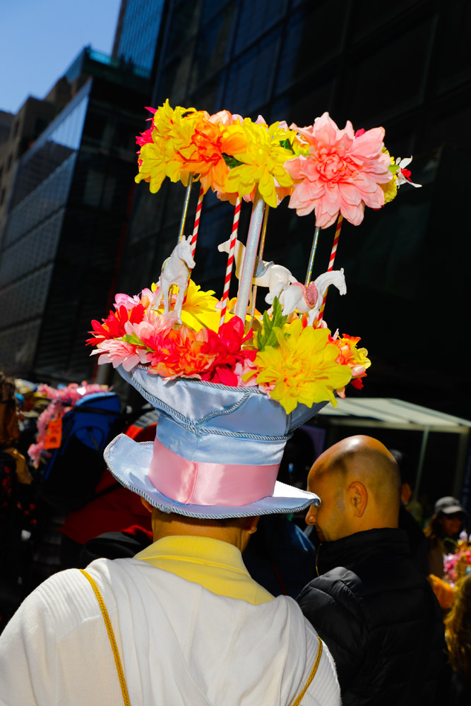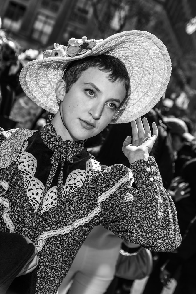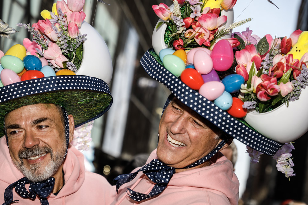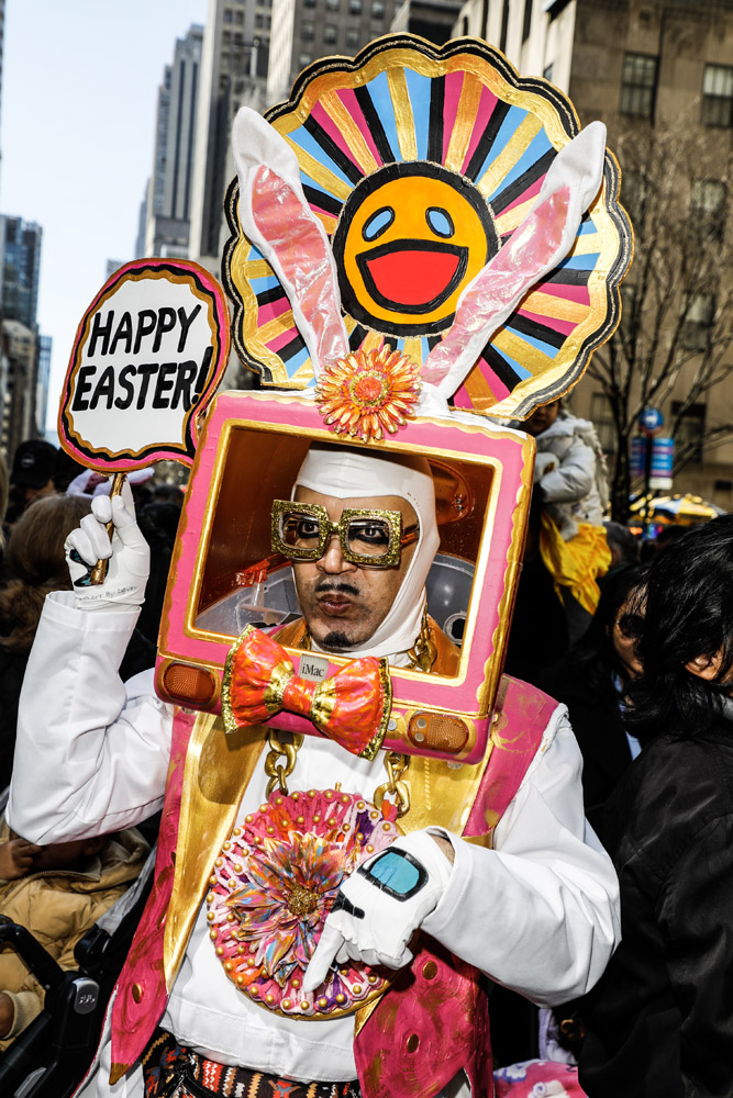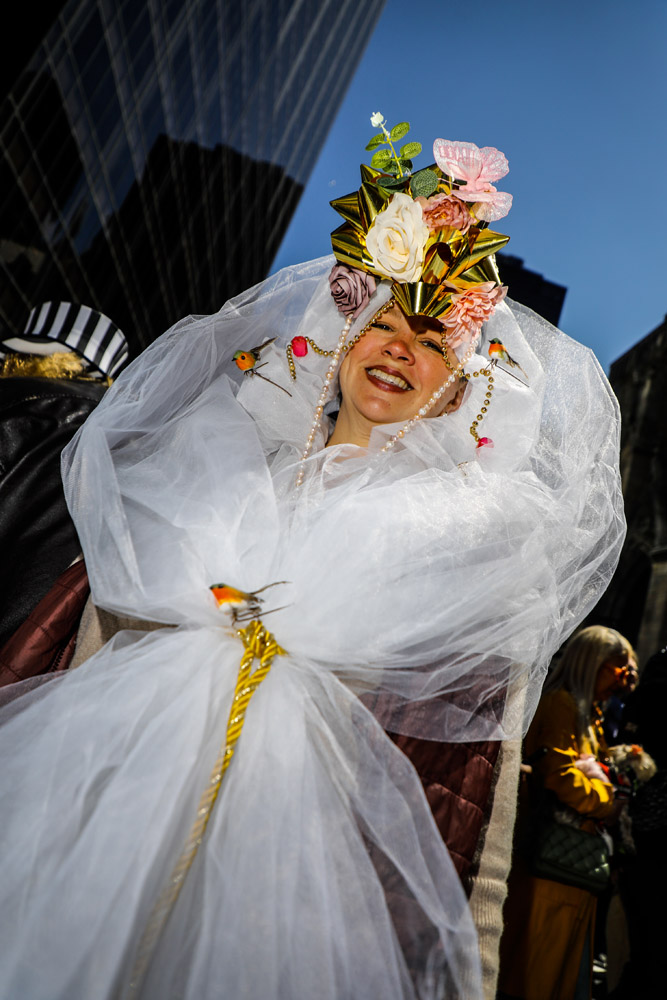 Here is a selection of photos from last Sunday’s Easter Parade in NYC. Several blocks of Fifth Avenue around St. Patrick’s Cathedral are closed to traffic. It was a beautiful day and folks of all kinds came out to see and be seen. Bonnets, imagination, creativity, good feelings, and zaniness abound!! These photos are part of a series called PARTY PARADE PORTRAITS which I started after 9-11 and includes the St. Patrick’s, Mermaid, Halloween, and Gay Pride parades. The series is ultimately in black and white and portraits, but this parade is all about costume and color so I’m going with both!! The parade is a hoot!! Hope you enjoy the pix.