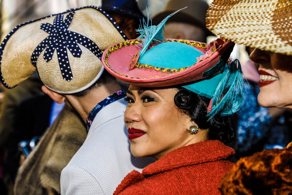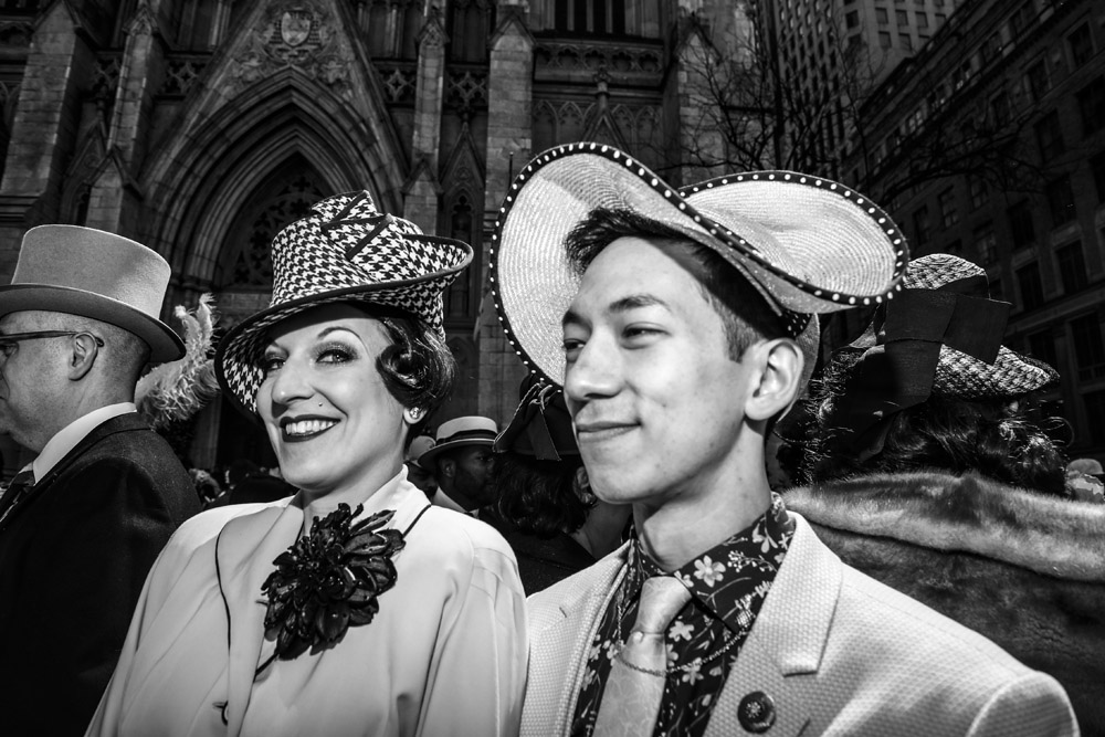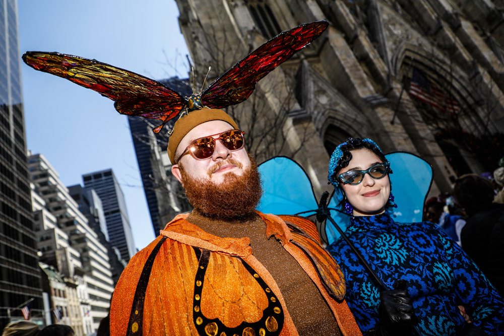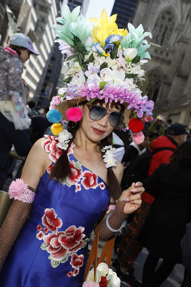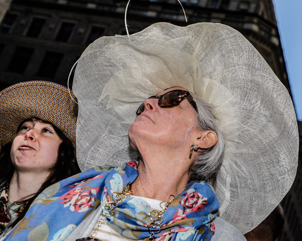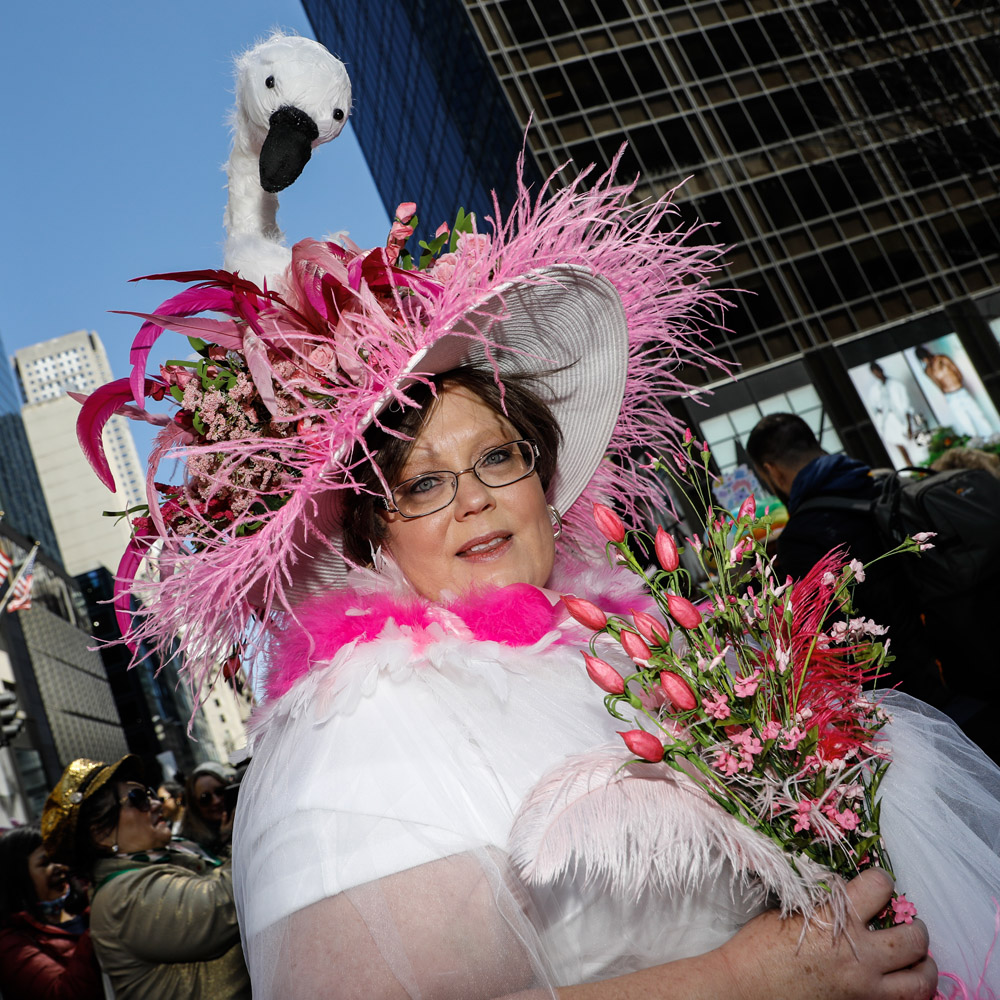 Here is a selection of photos from last Sunday’s Easter Parade in NYC. Several blocks of Fifth Avenue around St. Patrick’s Cathedral are closed to traffic. It was a beautiful day and folks of all kinds came out to see and be seen. Bonnets, imagination, creativity, good feelings, and zaniness abound!! These photos are part of a series called PARTY PARADE PORTRAITS which I started after 9-11 and includes the St. Patrick’s, Mermaid, Halloween, and Gay Pride parades. The series is ultimately in black and white and portraits, but this parade is all about costume and color so I’m going with both!! The parade is a hoot!! Hope you enjoy the pix.